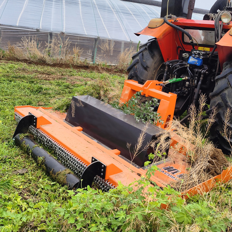 连接装置:设计有专门适配滑移装载机的连接接口,能快速、稳固地安装在滑移装载机上,实现动力传输与操作控制的有效衔接,确保在作业过程中割草机与装载机协同稳定运行。